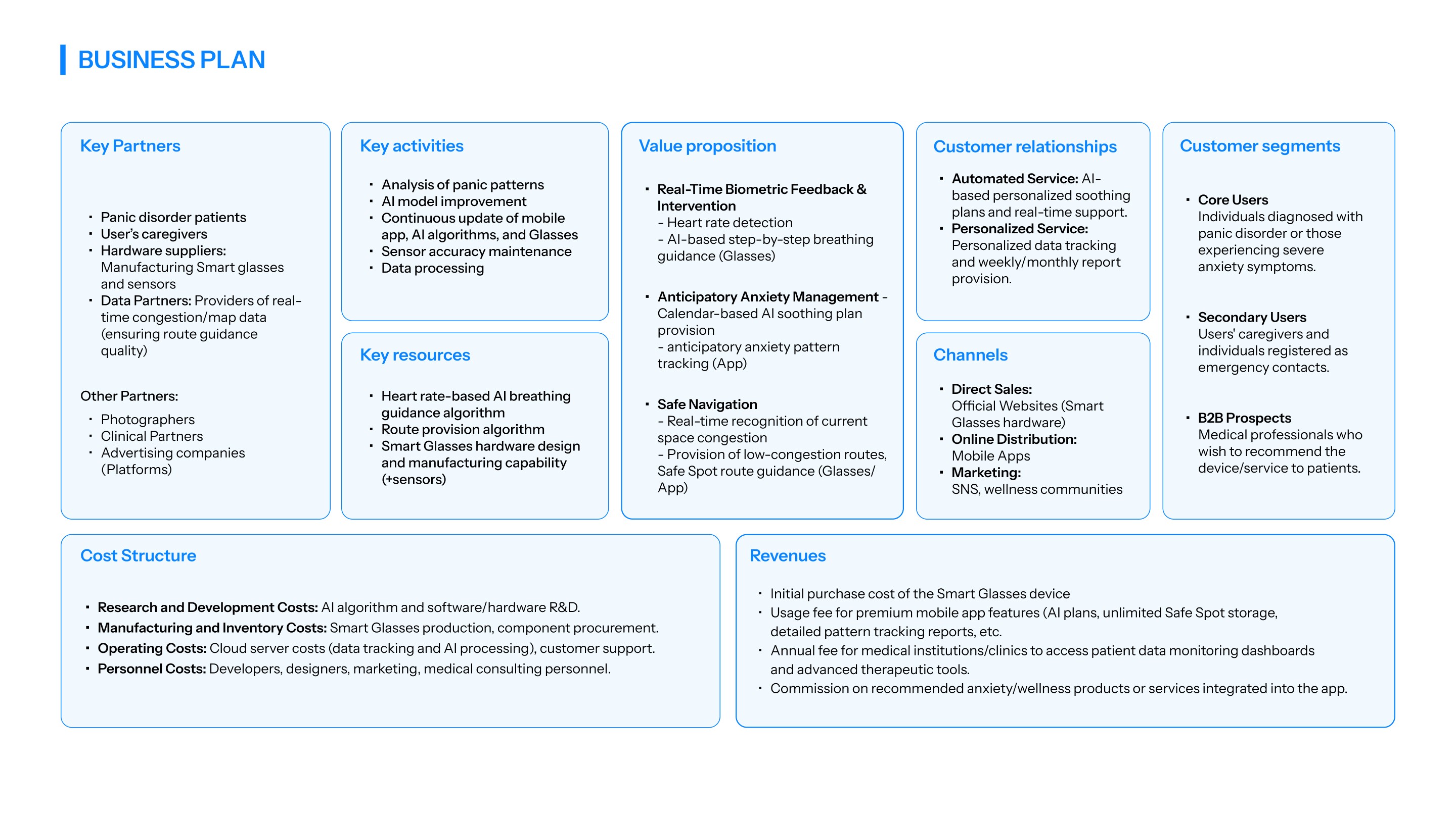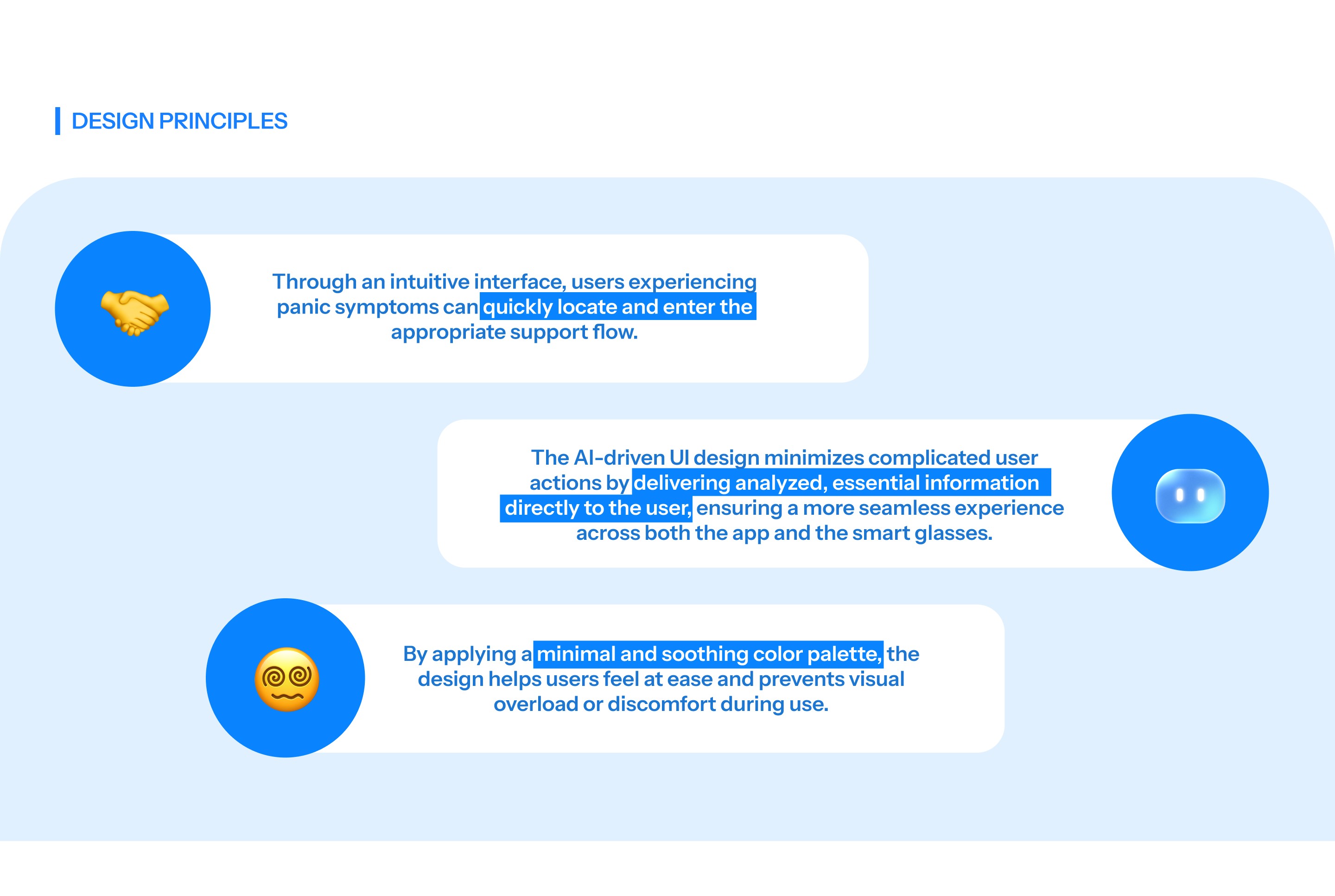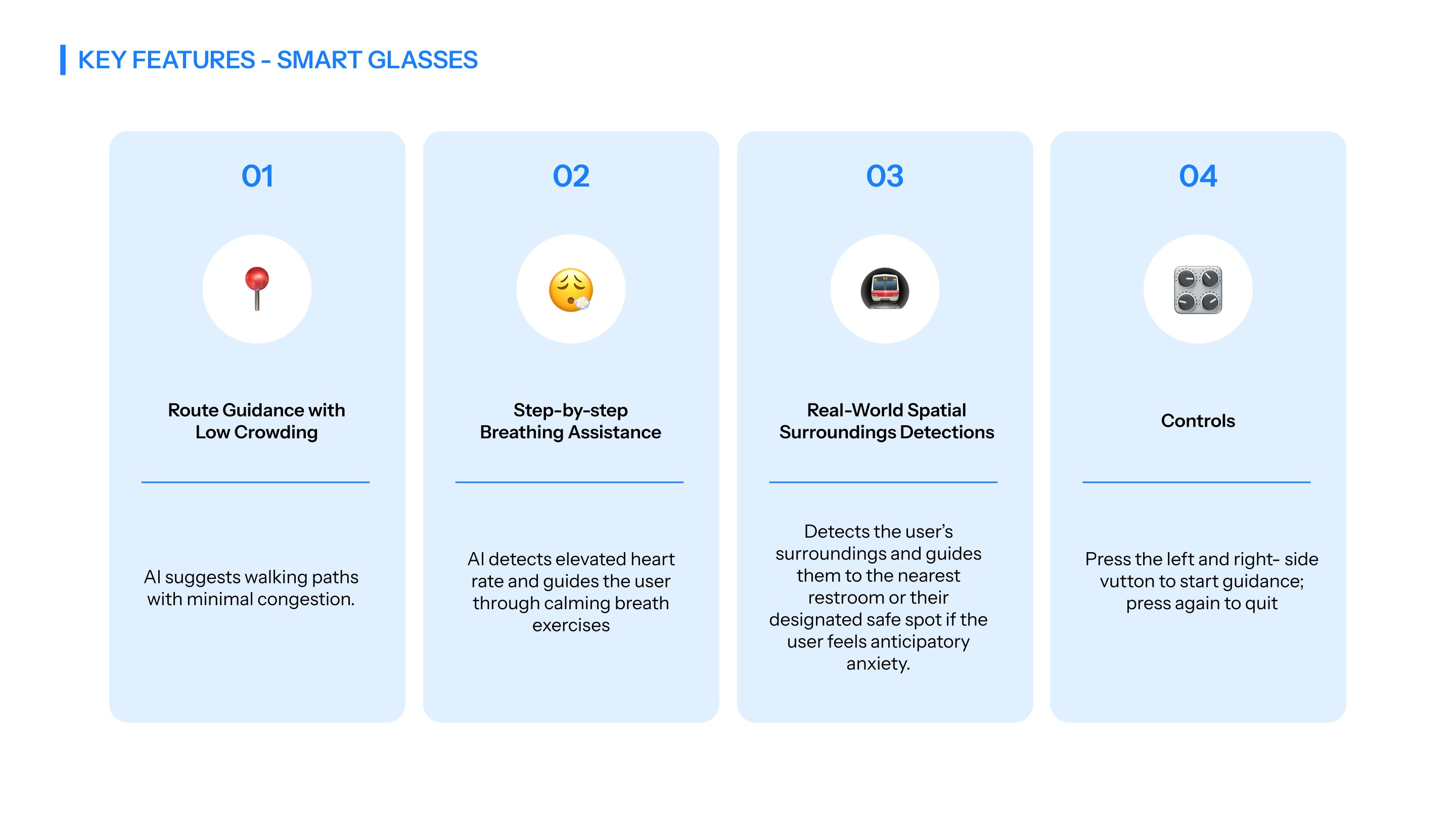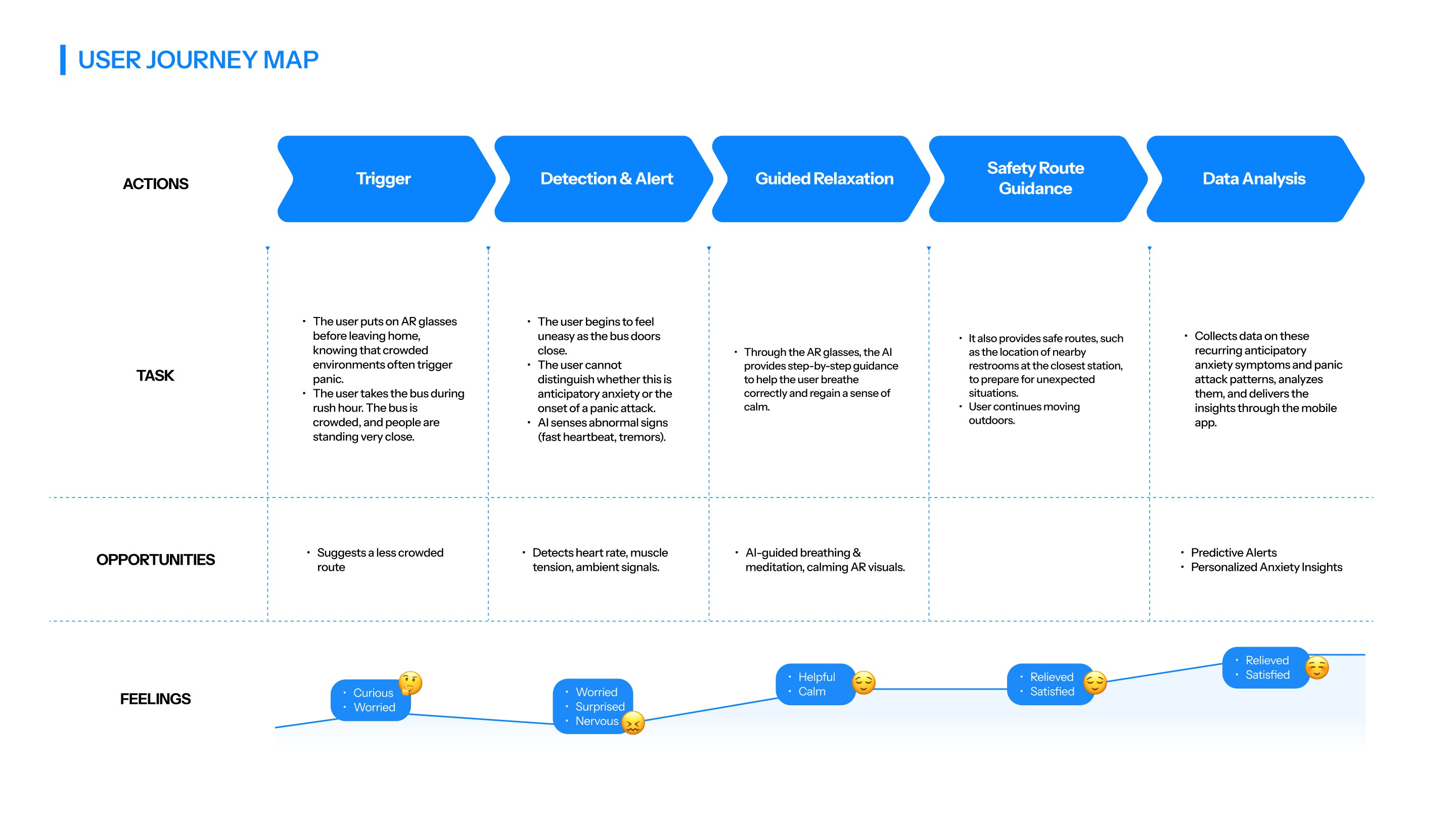 PACE is an app designed for individuals experiencing panic disorder, helping users who often face significant limitations in their daily lives. By integrating smart glasses with a mobile app, PACE uses an AI assistant to support users in managing their symptoms and identifying behavioral or emotional patterns. Through real-time guidance and immediate assistance provided by AI, the app enhances users’ ability to navigate daily situations with greater stability and confidence.
